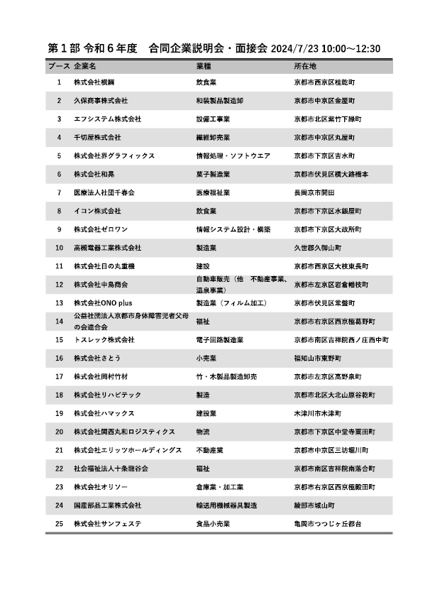 京都の企業50社が集まる合同企業説明会・面接会に出展が決まりました。